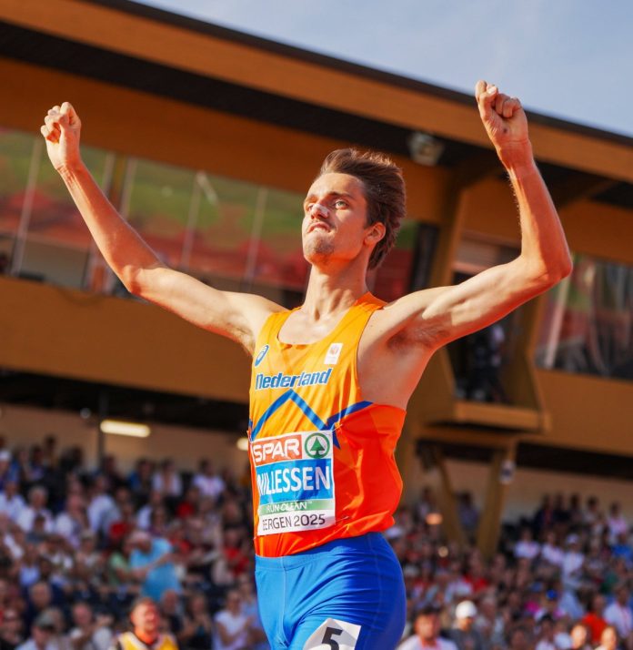 Niels Laros connects Bergen’s planes. 🇳🇱 Dutch phenom unleashes 54.11 final grandmaster: 13. 44.74 To storm the European U23 5000M GOLD. Photo by Getty Images for European Athletics
