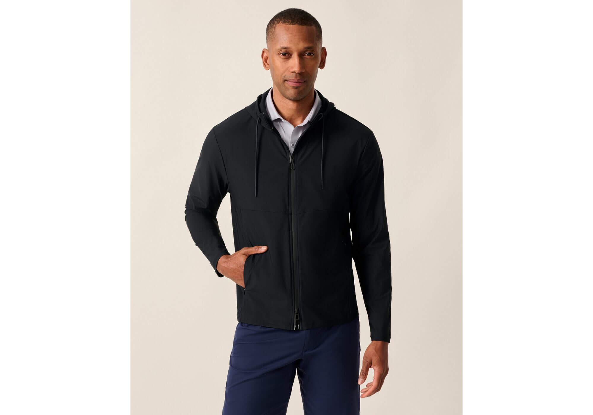 of Marshal Featherweight Hooded Jacket it’s essential for a capsule wardrobe. It makes layering easy. There’s enough to take the edge off a chilly morning, but it never feels heavy or so warm that you might need to take off the layers. It shortens the cooldown enough, moves easily, and adds a sharp layer that works for you, not against you. The hood gives it an extra bit of coverage for unexpected puffs or quick jaunts outside, and the whole thing packs effortlessly with whatever you’re already wearing. You’ll find yourself wearing this often because it’s lightweight, looks good, and just works.