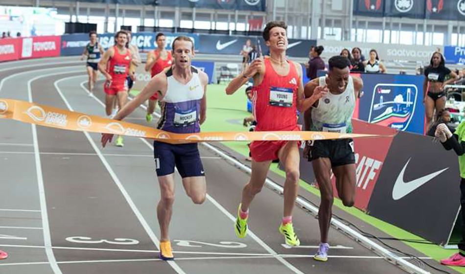 Cole Hawker once again capitalized on brilliant timing to win the USATF 3000m indoor title in 7:39.25 in a close race with Jared Nuguse (7:39.28) and Nico Young (7:39.29).