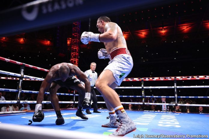“Yes, big news that will be announced soon, so you know, I’ll let these guys talk about it (promoter Warren and manager Sam Jones), but I’ll be good for it,” Daniel Dubois said. “And I’m coming back!”