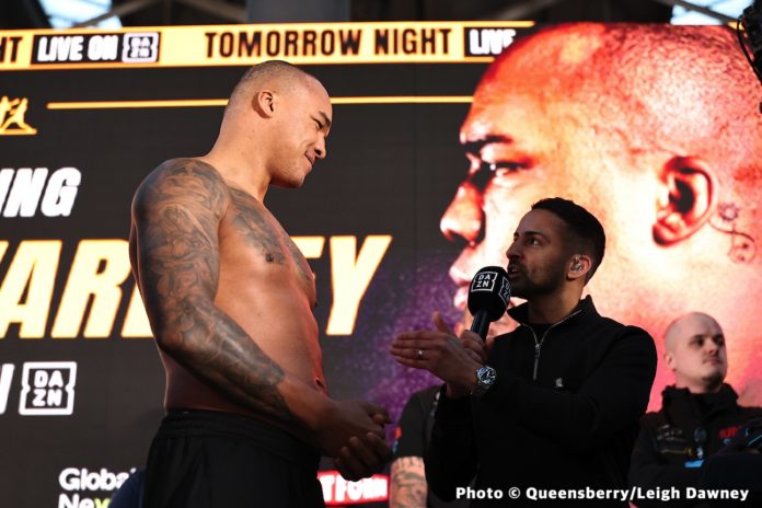 Fabio Wardley says he expects Joseph Parker to be cautious and less willing to engage against him in their main line-up in London on Saturday night. He says that if WBO interim heavyweight champion Parker (36-3, 24 KOs) has less activity on offense, he’ll have to “manage” the firepower he’s going to unleash on him.
