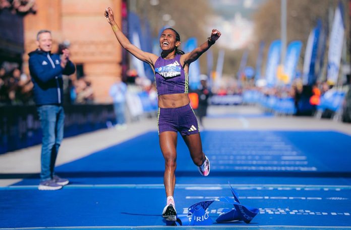 Fotienne Tesfa’s 2:10:53 on her marathon debut in Barcelona on Sunday (March 15) puts the Ethiopian at No. 2 in the all-time women’s marathon world rankings. Only Ruth Chepngetic’s 2:09:56 from Chicago in 2024 is faster, though. Kenya’s world record is marred by the fact that it imposed a three-year drug ban last October.