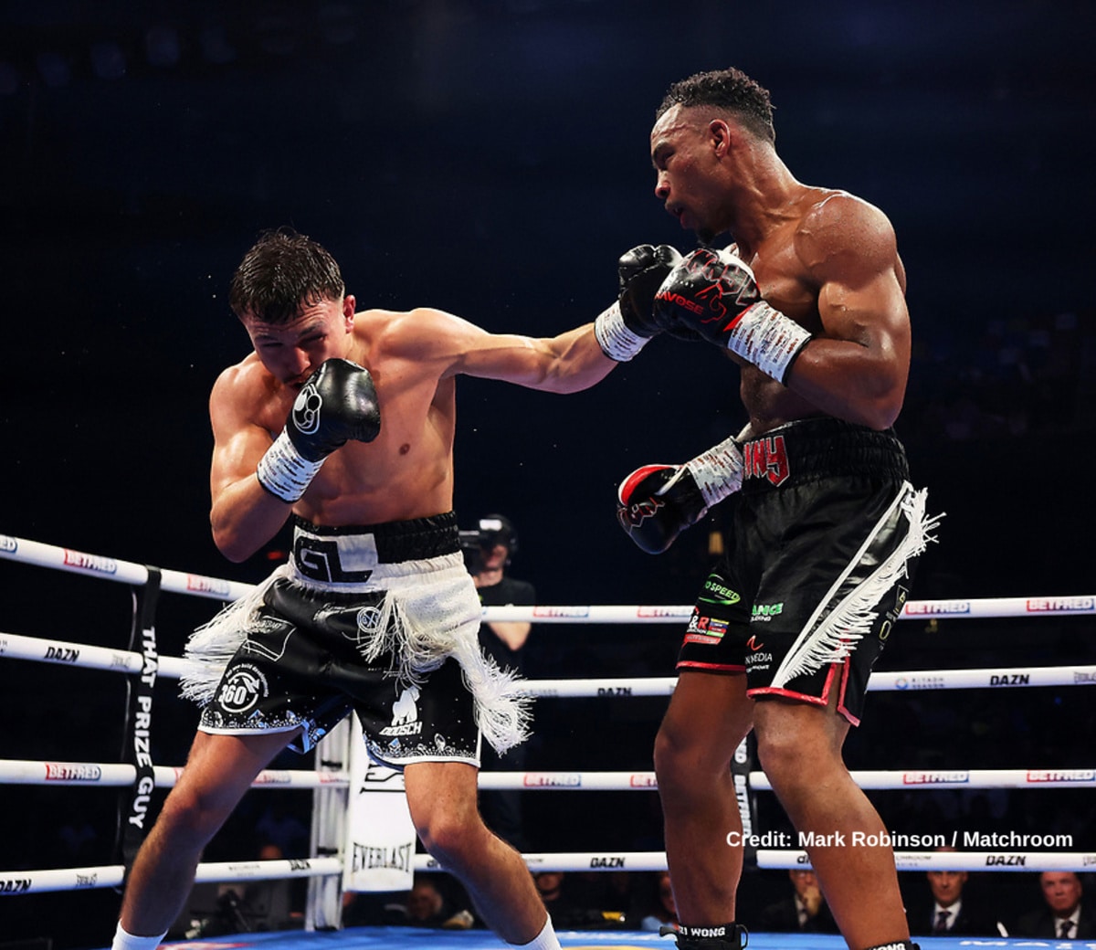 At middleweight, Jimmy Sains (12-0, 10 KOs) retained his English title with a majority decision over Derrick Osaze (13-4, 3 KOs). The scores were 95-95, 97-93 and 96-94.
