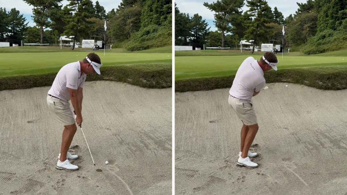 “Look at how little sand he gets,” says McLachlin. “It’s basically a fairway shot out of the bunker.”