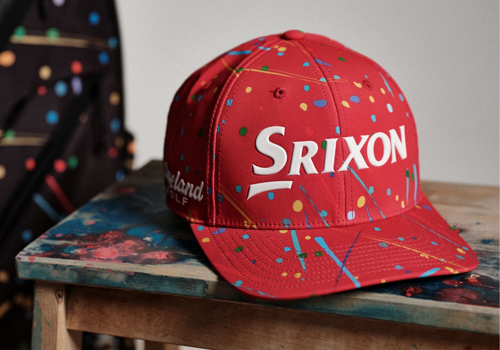 Tour Ink Collection it’s pretty simple: four Srixon Tour hats and three Srixon S3 stand bags splashed with colors from either an avant-garde artist or a clumsy house painter. They bring a certain atmosphere of Easter eggs.