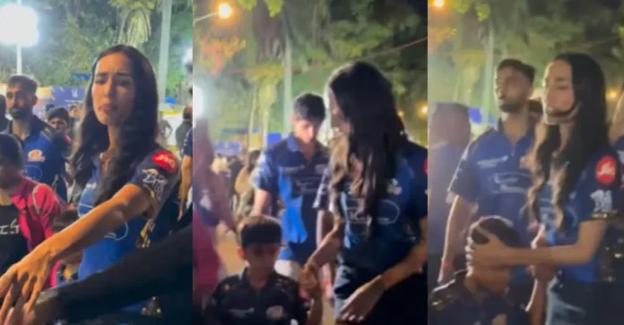 Mahieka Sharma steps in to protect Hardik Pandya’s 5-year-old from the cameras outside the Wankhede stadium.