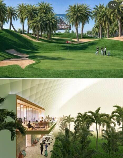Four massive domes would cover the climate-controlled executive course (and a range) that would have the look and feel of Arizona.