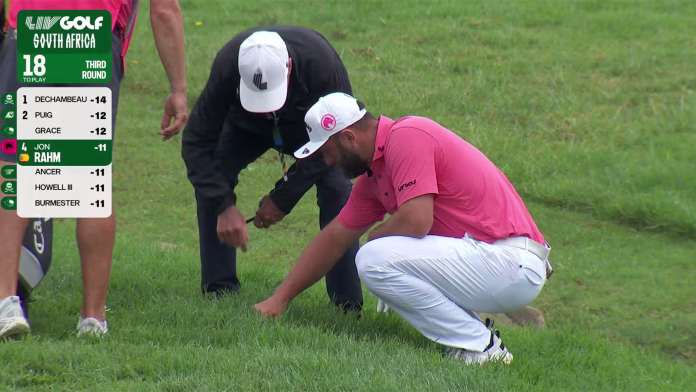 JOHANNESBURG – When Jon Rahm found his opening tee shot hard left in the third round of the LIV South Africahe called a rules official to confirm that his ball had entered his spot on the court, a scenario in which the rules would grant him free relief.