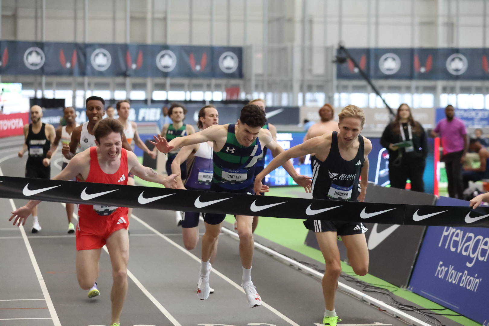 The women were slower in the 400m with Rosie Effiong in 51.53 ahead of the Paris People’s 51.65, but Bailey Lear 51.60 in the first race. Nathan Green 3:37.65 PB and Luke Hauser 3:37.67 with Vincent Siatt 3:37.73 1500m. The favorites won, with Jared Nugus fourth in 3:38.06 and Cole Hawker fifth in 3:38.08. Young talent Cooper Lutkenhaus did his part to win the 800m in 1:46.68, with Sean Dolan second in 1:47.16 (missing qualifying time) and Isiah Harris third in 1:47.22.