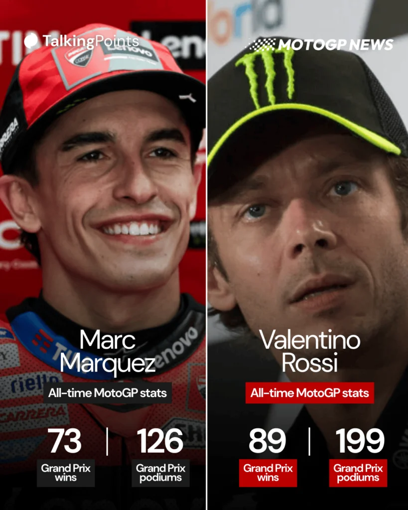Marc Marquez and Valentino Rossi's all-time MotoGP winners and podiums graphics