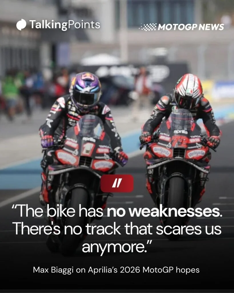 Max Biaggi advises Aprilia to provide a consistent platform for all their riders by 2026.