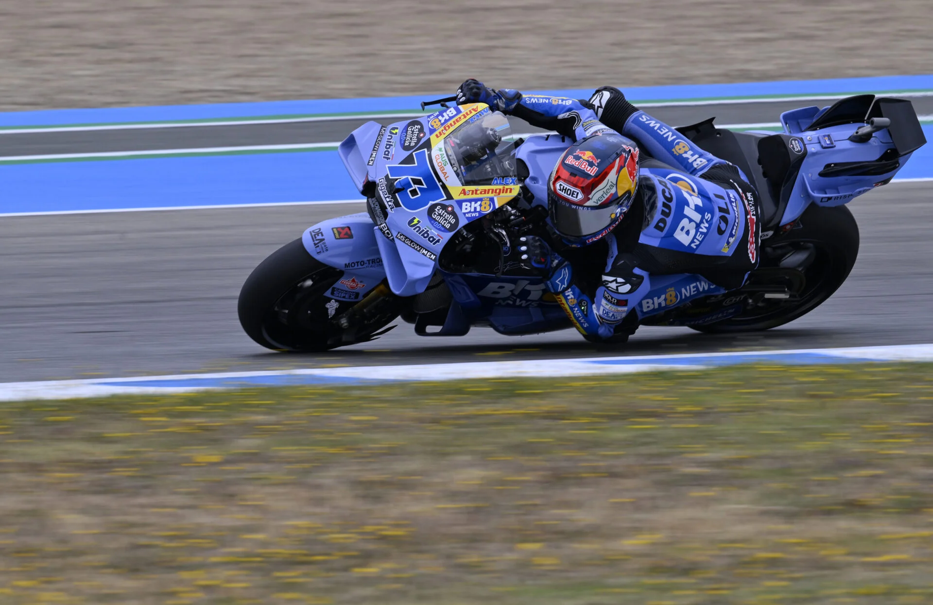 Ducati rider Bagnaya He crashed just two minutes into the session, after locking up his front tire trying to brake for Jerez’s regular No.1. His Desmosedici GP26 refused to bite the track, with the rear tire jumping from side to side as Italian Alex Marquez tried to slow down behind him.