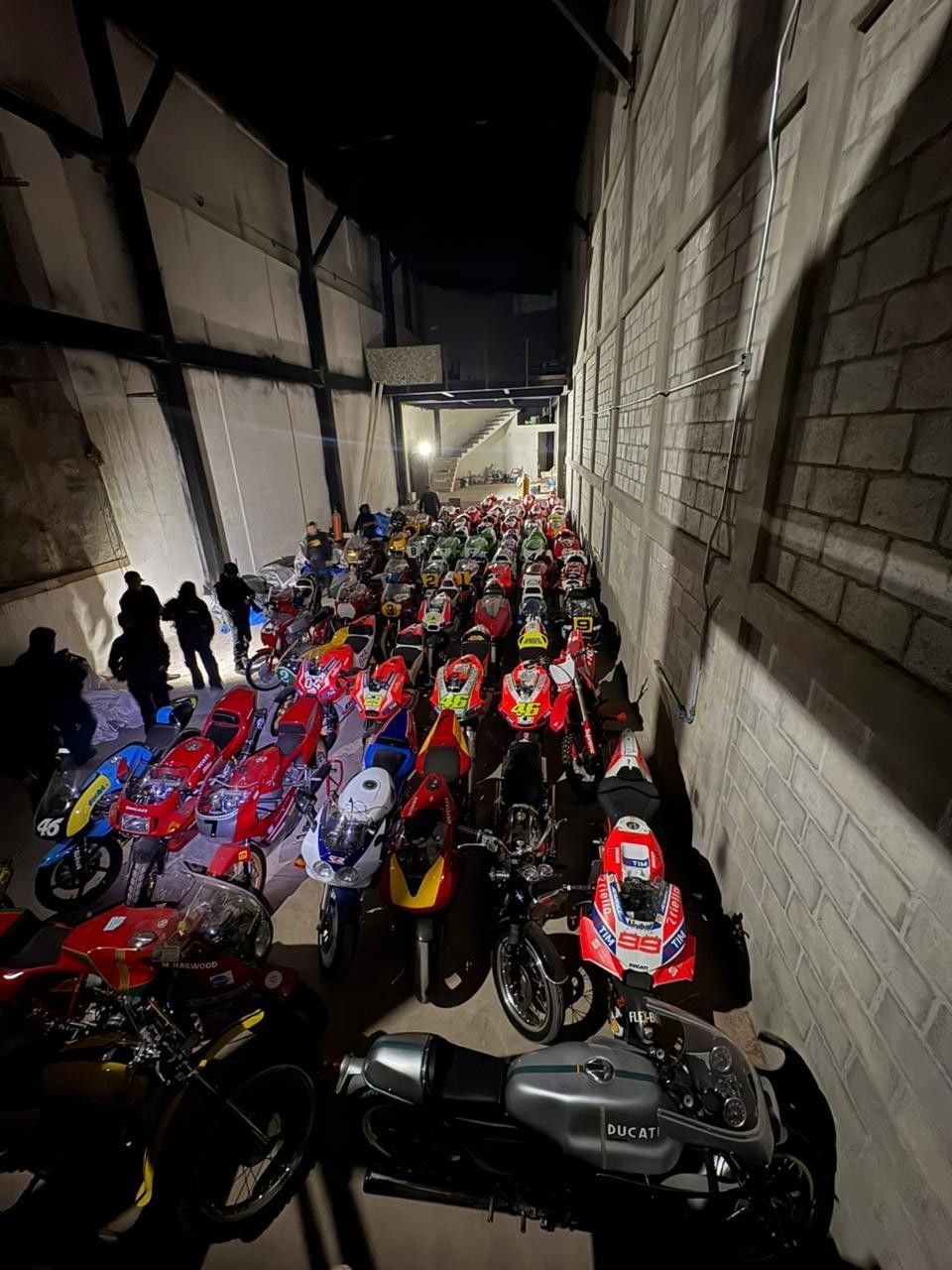 Ducati MotoGP racing bikes designed by Andrea Dovizioso, Loris Capirossi and Jorge Lorenzo with Marc Marquez’s Moto2 bike in the background. FBI photo.