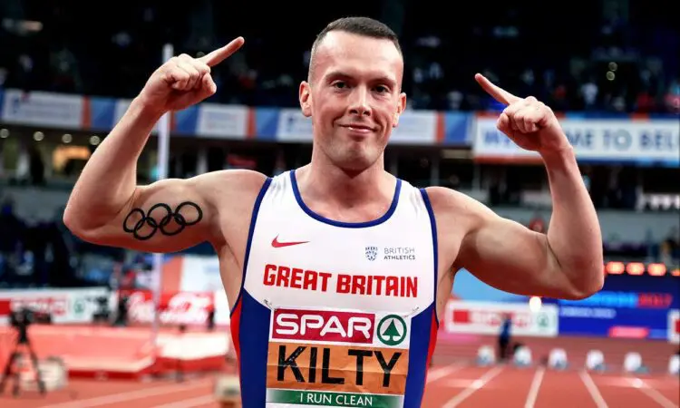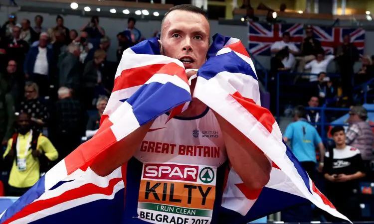 As I turned to the lane, I dipped and looked to the left and knew I had Dwayne and Sue beat because I couldn’t see them. When I finally hit the boards I looked up to see British flags flying everywhere. And in Poland, the commentator was shouting “Richard Kilty”.