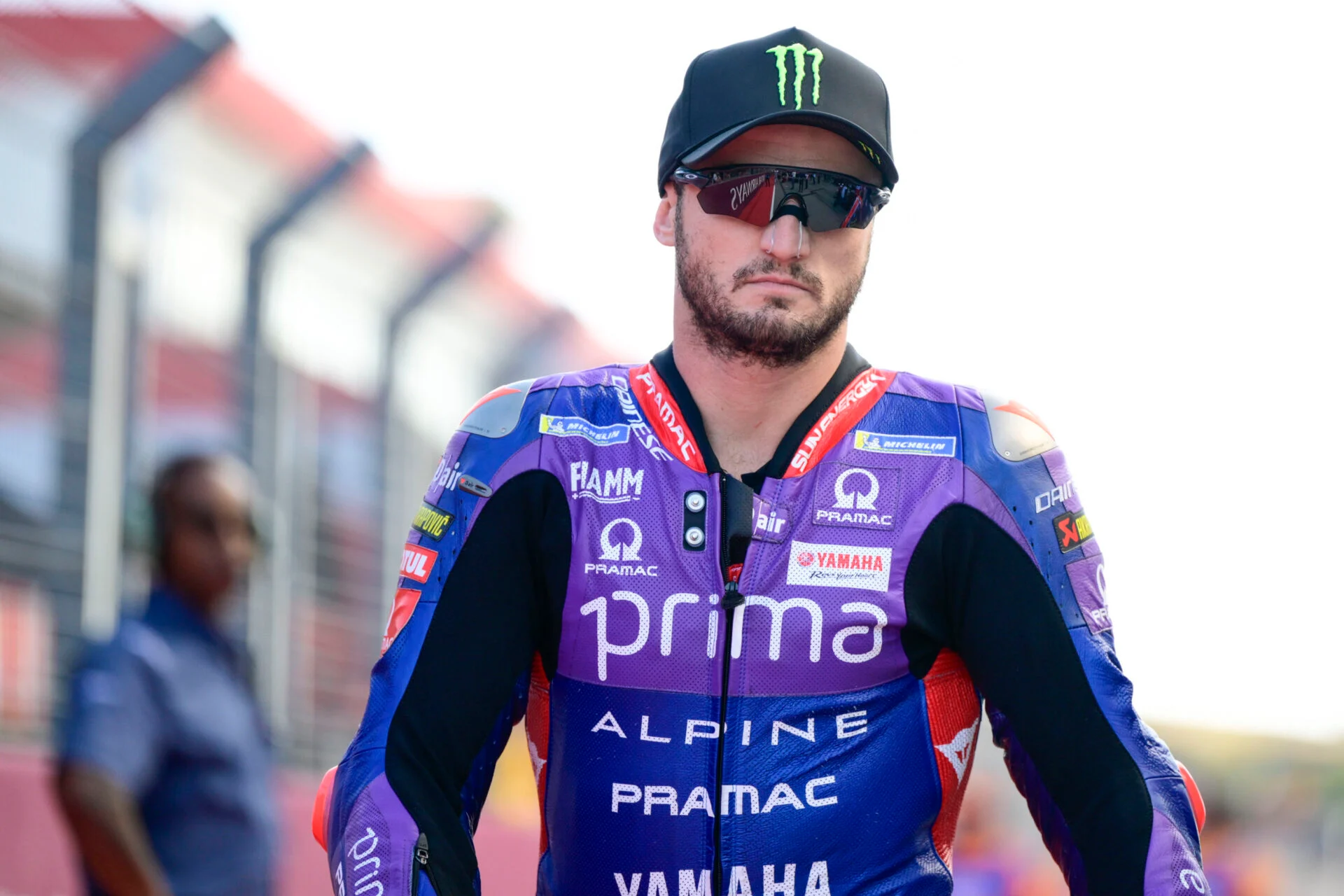 Pramac Yamaha rider Jack Miller smiles on the grid ahead of the Mandalika Sprint at the 2025 MotoGP Indonesian Grand Prix.