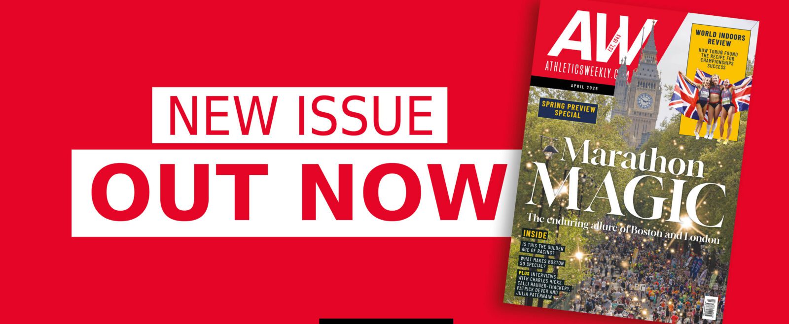 The latest edition of AW (released 2nd April) looks forward to the key spring marathons and returns to a brilliant edition of the World Indoor Championships.