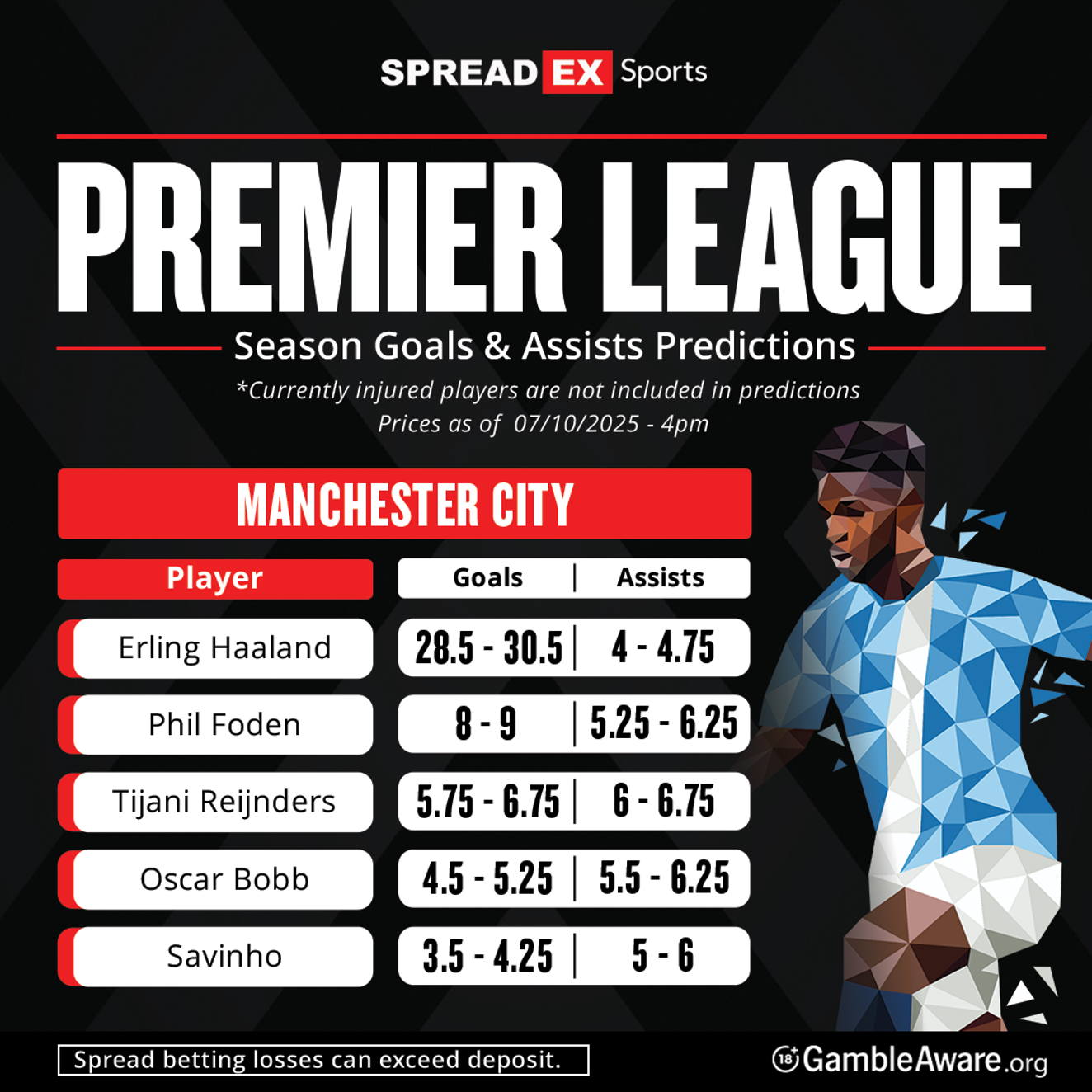 | Erling Braut Haaland | Manchester City | 28.5 – 30.5 |