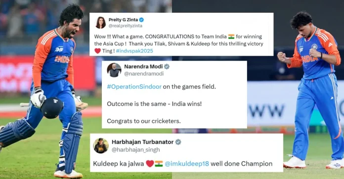 Team Team Team Team Team Team to lift the Asian Cup. We are proud of you. Tilak Varma (not 69), Kuldeep Yazav for Pakistan (4/30), Message: Baap Baap Hi Rehta hai #Asiakupfinal @Bcci