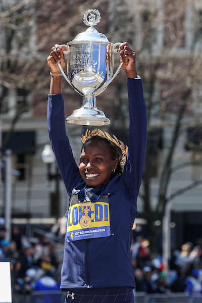 Sharon Lockedy, KEN, won the 130th Boston Marathon in 2:18.51. Sharon defended her title in 2025.