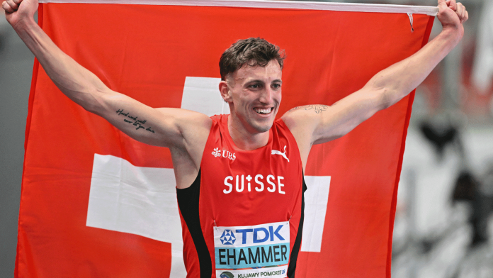 Simon Ehammer produced a record-breaking performance during the evening session of the Toruń 2026 World Indoor Championships, rewriting the heptathlon record in Toruń.