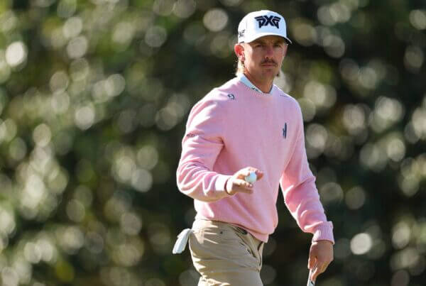 We love that Aberg wore pink on Friday, but it didn’t make up for his outfit in the Par-3 Contest. This polo had shades of some of the worst European Ryder Cup uniforms we’ve seen.