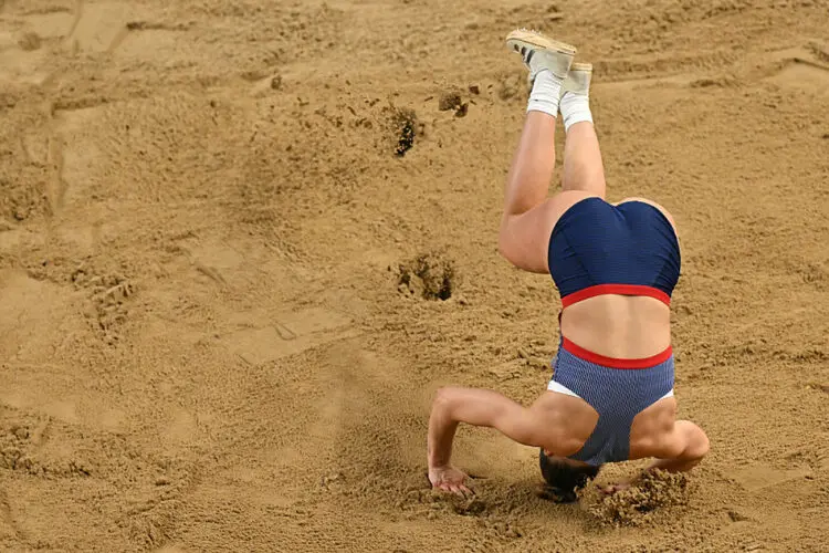 The 22-year-old jumped up and was flying through the air when she suddenly realized that the sand had not been released after the previous athlete’s attempt.