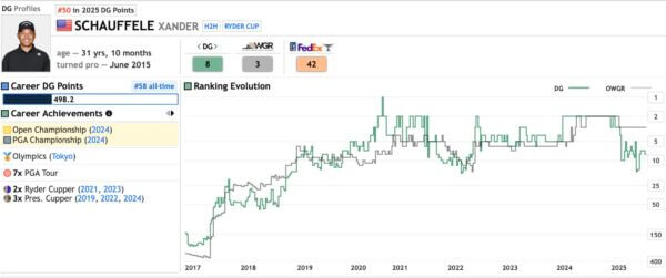 End of season 2025 down to No.8 in Golf Data is a considerable step back and its worst sign since 2022. Schauffle did not have a single single high end, which is hard to believe.