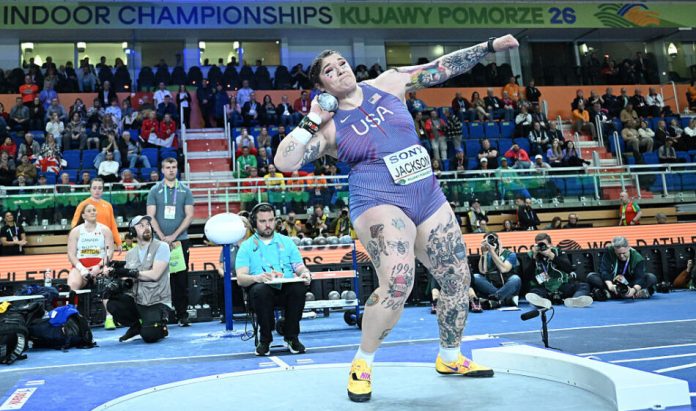 Chase Jackson won the United States’ first gold at the championships when he threw 20.14m in Torun on Friday (March 20).