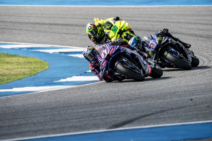 Toprak Razgatlioglu on track with his Pramac Racing Yamaha M1 at the Buriram MotoGP test.