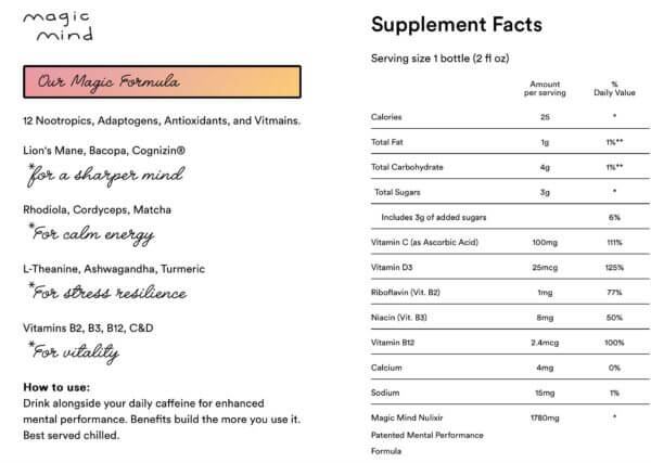 The premise of Magic Mind is that it can clear your mind and provide energy without the obvious drawbacks of other stimulants.
