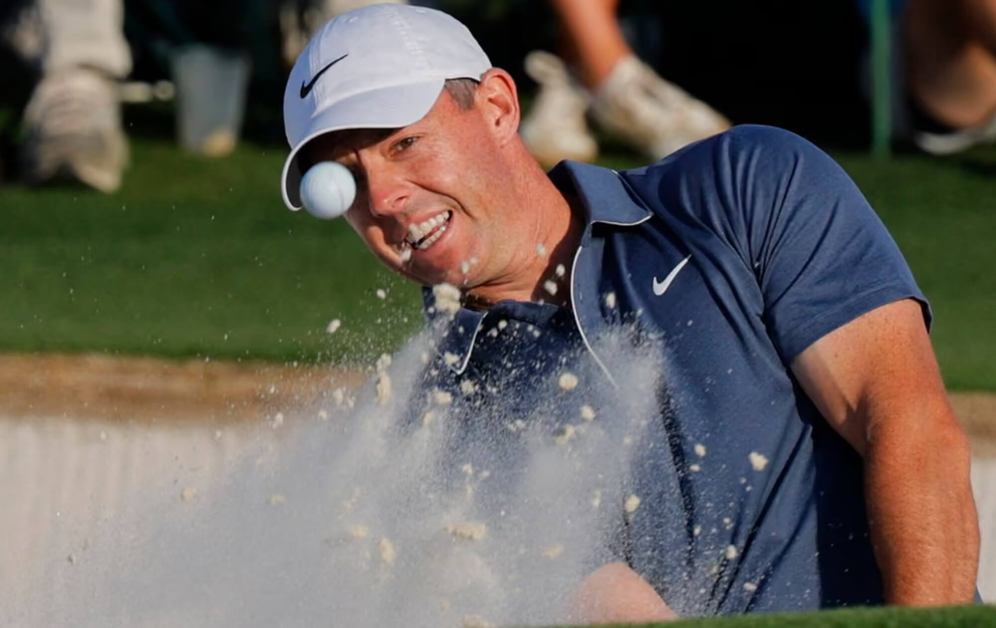 Rory closed his drive in Position A and then immediately dropped his approach into the right bunker. His first shot looked great … until it didn’t.