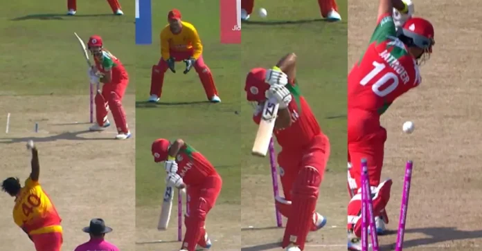 Muzarabani opted for a longer length by turning the ball into the probing zone. The delivery is sharply back off the seam and goes through the narrow gap between Jatinder’s bat and pad. The Omani captain, who had two brains and played slightly late off the front foot, could only look back in despair as the ball smashed the wood. Seeing the middle stump drift away heralded a disastrous start for the Associate nation. Jatinder departed for 5 (5 balls) and rocked his side at 7/1, setting the tone for a brutal opening spell.
